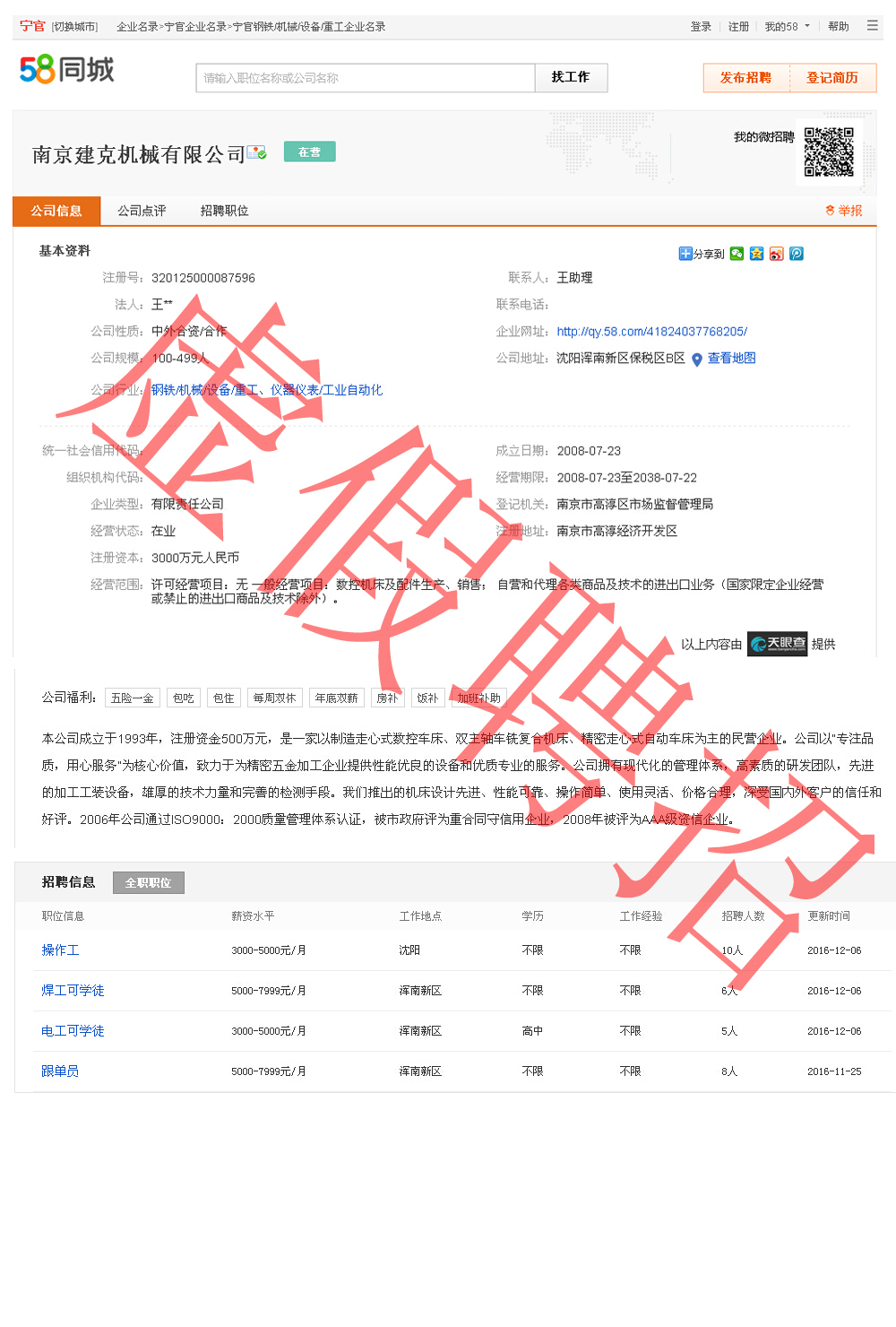 近期我司接到众多沈阳地区的应聘电话,经调查了解,有非法人员冒充我司在58同城注册帐号并且发布沈阳地区招聘广告。现我司已与58同城沟通删除该系列虚假信息中,请广大应聘者切勿上当受骗,以免造成不必要的损失。如已经发生不良情况,请及时报警并与58客服沟通。由此带来…