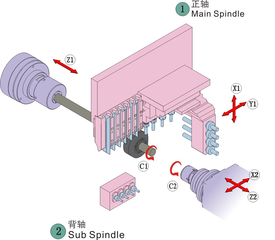 移动轴数 | 5轴 | X 1 、Y 1 、Z 1 、X 2 、Z 2 | |
