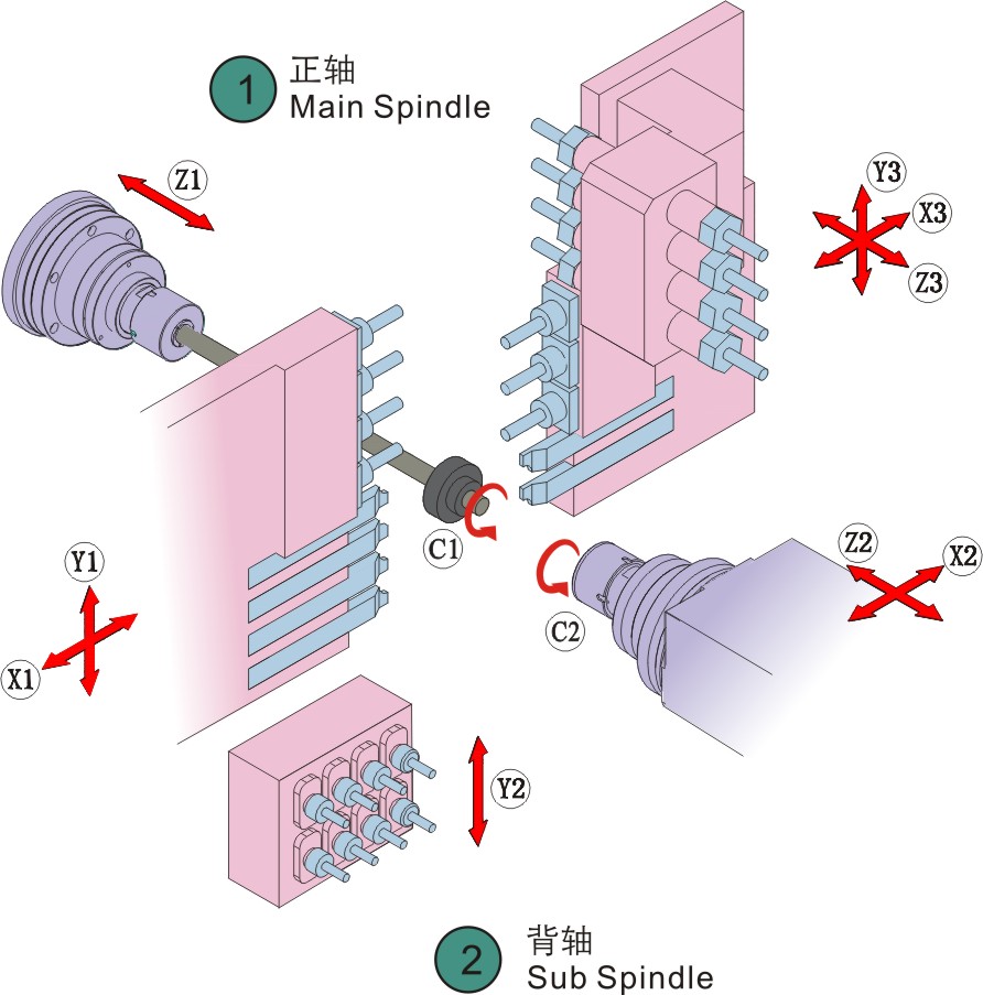 主轴外径刀 | 主轴内径刀 | 主轴侧面动力头 | 副轴内径刀 | 副轴端面动力头 |